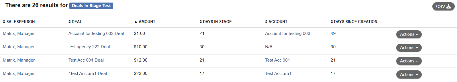 9. On the Aler's result page, click the Actions button to add a new Activity or send an email to your Salesperson. Note that Send Email option is only available for managers.
