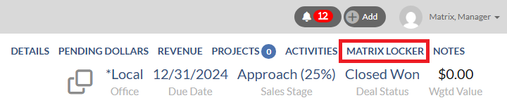 - A new section header, "Matrix Locker," has been added to the Deal Profile page.