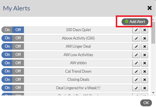 2. Click (+) Add Alert button found on the top right-hand corner of the My Alerts dialog.